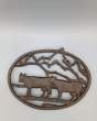 Dessous de Plat en Fonte , Aspect Vieilli avec une représentation de Vaches et Montagne. A la fois Rustique et Dépaysant ce dessous-de-plat charmera vos invités.