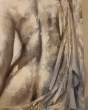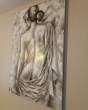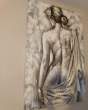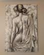 Très belle toile, peinture à l'huile sur montant bois représentant une femme de dos avec ses effets reliefs et structurés gris et blanc.
