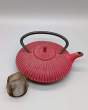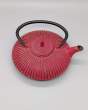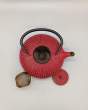 Théière en fonte vieillie de couleur rouge avec filtre amovible. Très robuste et de bonne qualité.