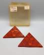 Lot de 2 Catadioptres Triangulaires Rouges Réfléchissants homologués, spécialement conçu pour Remorques, Poids lourds et Véhicules agricoles. Hauteur 135 mm, Largeur 155 mm et entraxe de fixation 70 mm.